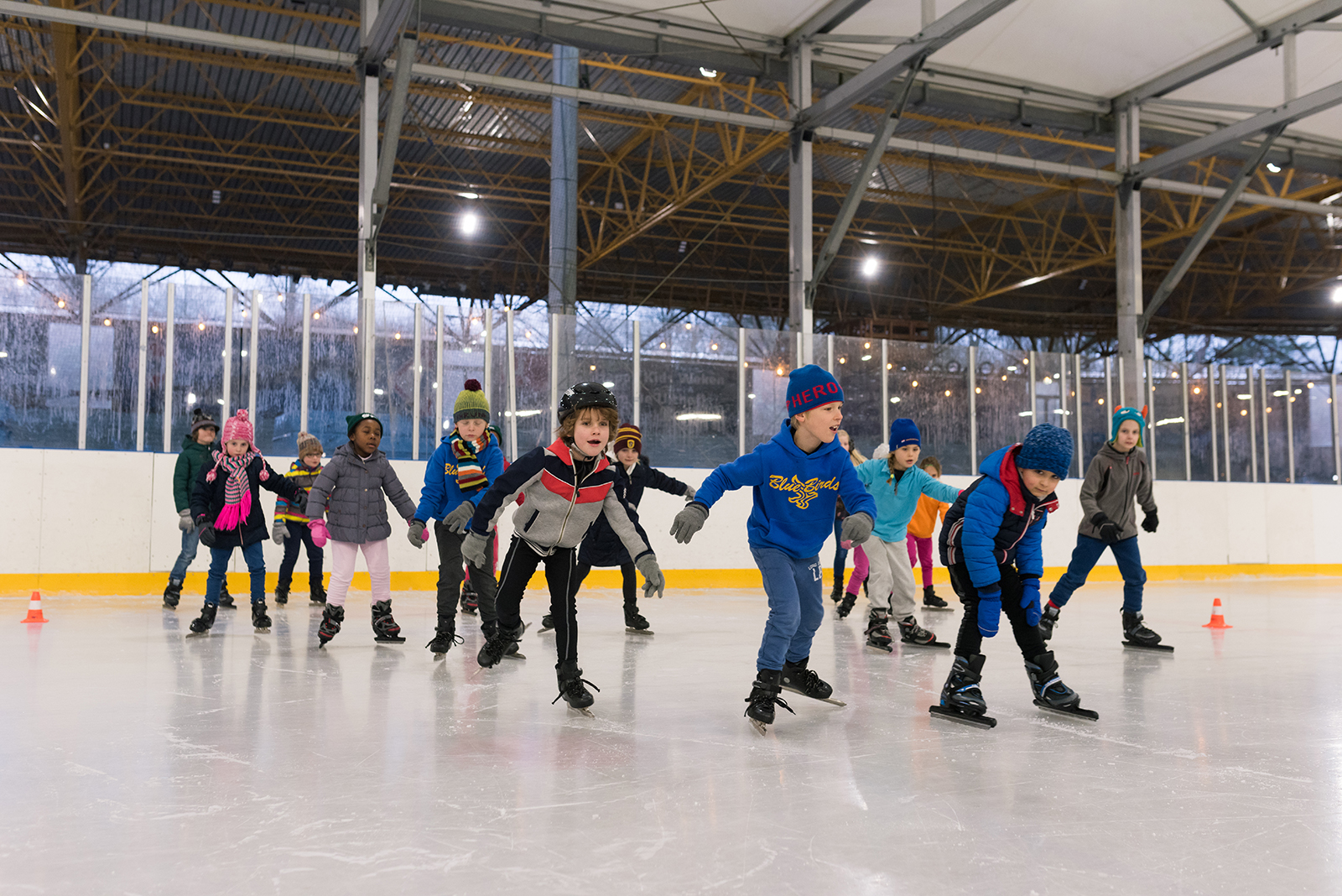 Gyerekfelügyelettel, korcsolya tanárral, minibuszos szállítással, felszerelés biztosításával.
