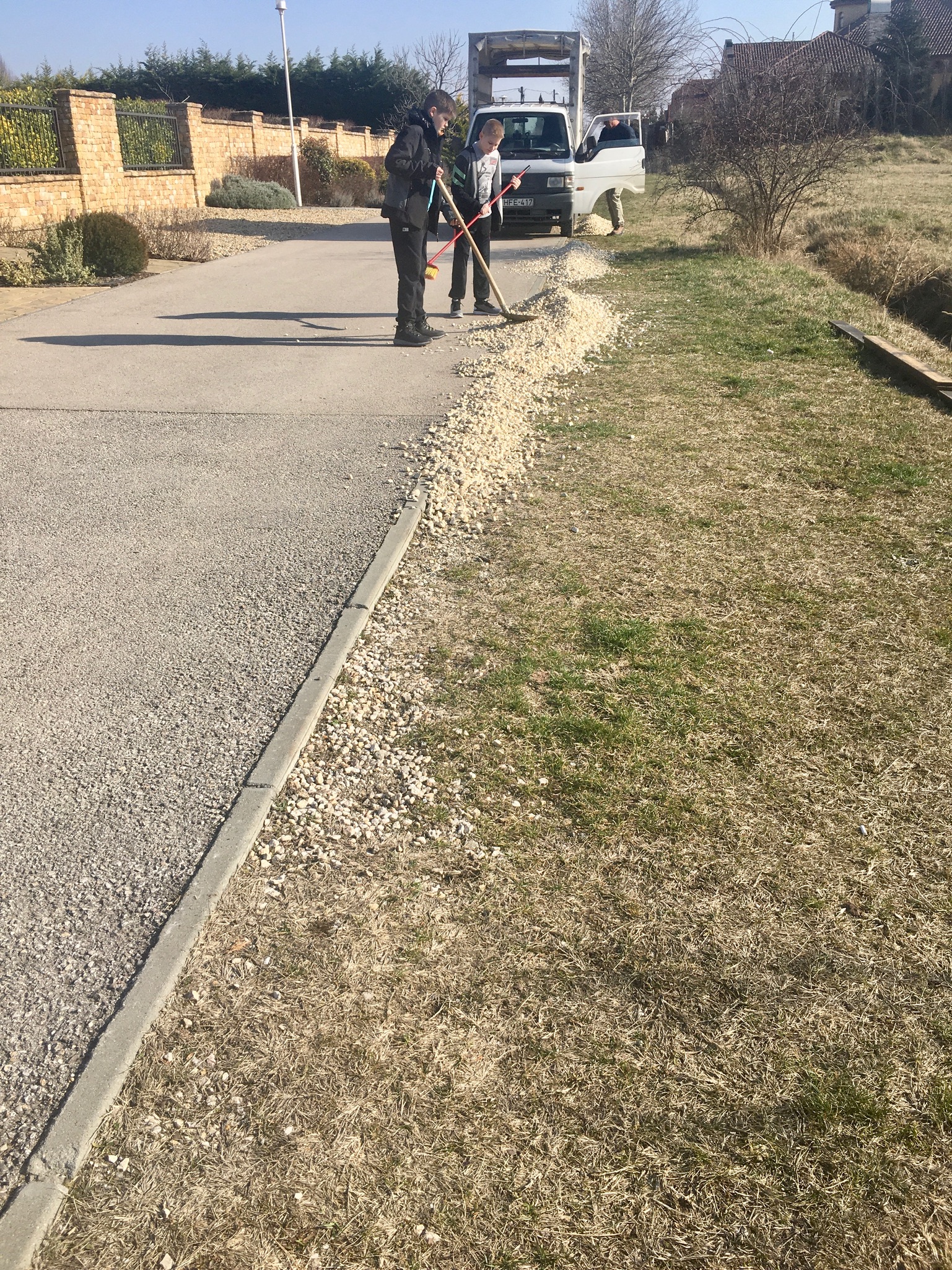 Az út mentén szeretnénk egy folyamatos bokor sávot létesíteni, mellyel a park kapna egy keretet, ezzel (is) jelezve az ide látogatóknak, hogy ez egy gondozott, szeretett környezet.