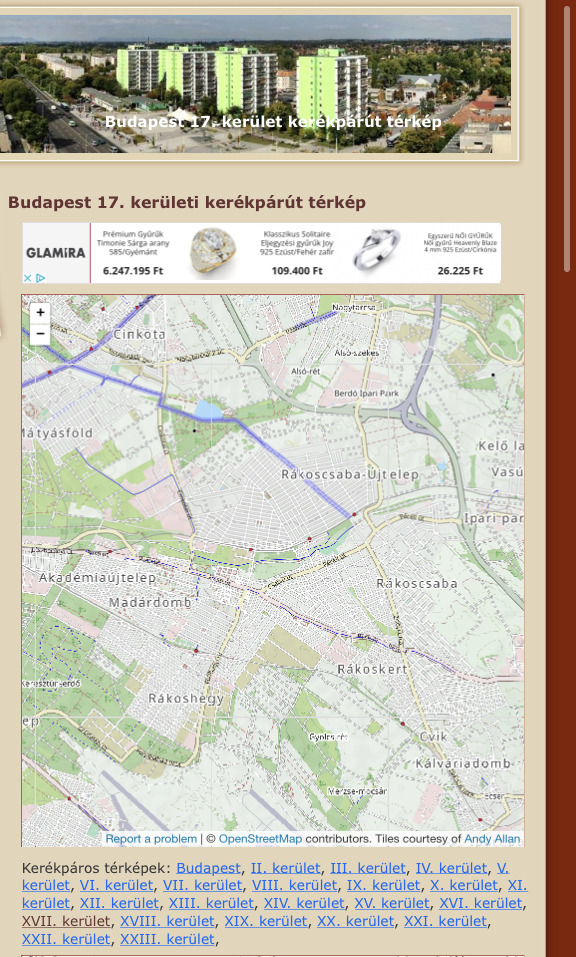 A 17.kerület eleve egy elég kívül eső kerület, ami miatt rengeteg fejlesztéstől, változástól elesik, hiszen el van szigetelődve picit. A tömegközlekedés folyamatos fejlesztése már kezd javítani a kerület helyzetén, azonban a bicikliutak száma napjainkban is igen alacsony. Igaz, hogy a Naplás tó felé az elmúlt években kiépült egy használható bicikliút, de, ha valaki az Örs vezér teréig szeretne közlekedni, ezt több mint 20 perc kitérővel teheti meg, a Naplás tó - Szilas patak felé. Amerre az Örs vezér teréig tartó út több mint 49 percet vehet igénybe. Ezt az időt egy bicikliút a Rákospatak jelölésú területtől, egyenesen az Örs vezér teréig, akár a felére lecsökkenthetné. (a pontos helyekhez, valamint időkhöz használt forrás: bkk.hu/downloads/map/187/)