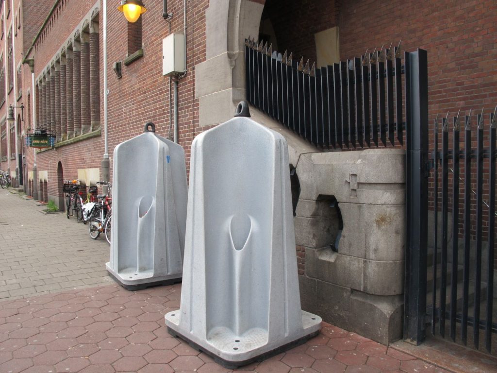 Mikor Hollandiában jártam a város minden masodik utcájában megtalálható volt egy nyilvános wc (piszoár). Körülbelül másfél négyzetméteres alapterületet foglal el, négy piszoár található rajta. Ilyeneket jó lenne elhelyezni szerte a centrumban. Szinte bárhol elfér.