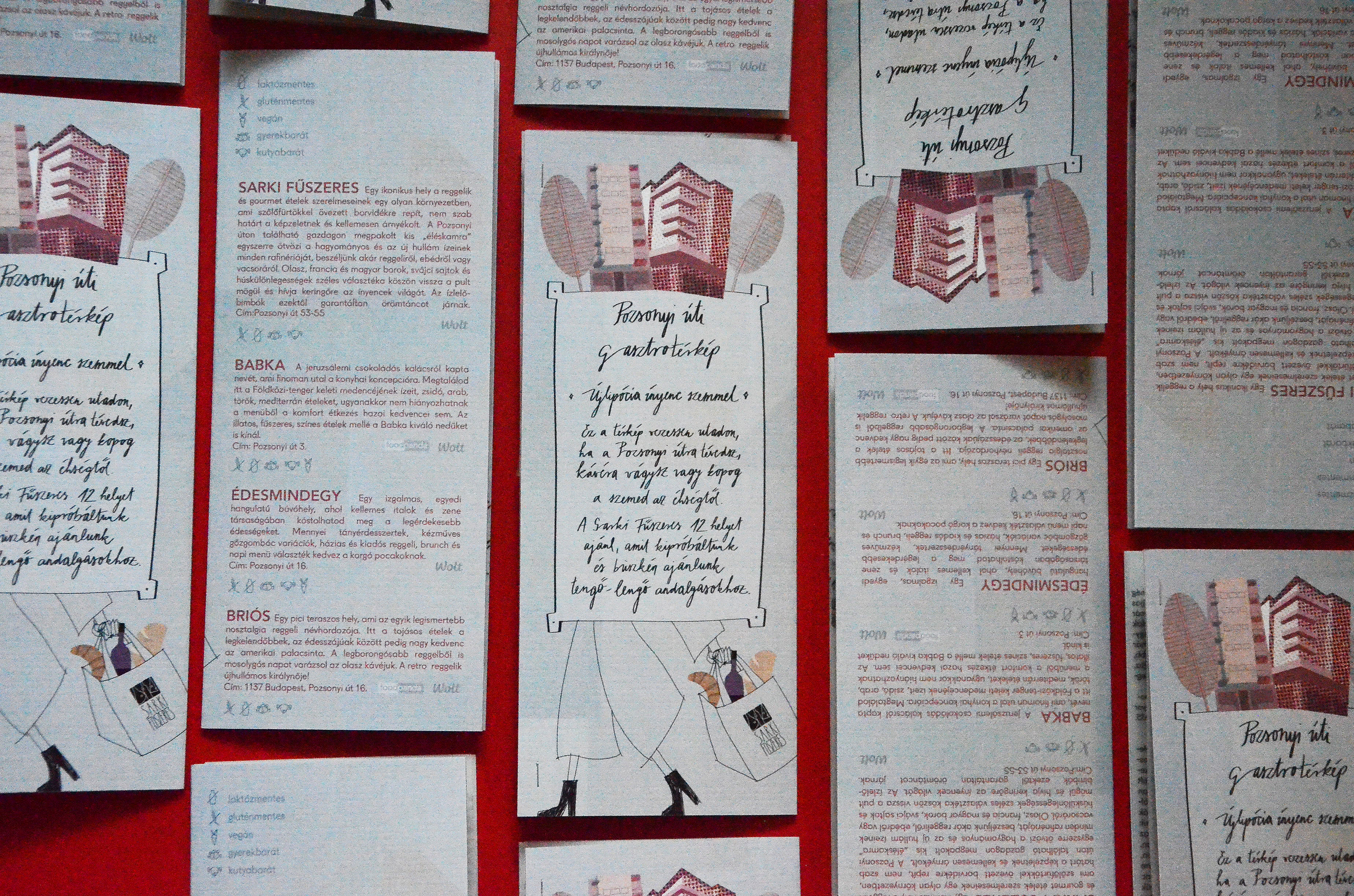 A Pozsonyi út mindig is különleges helynek számított Budapesten. Ebből a felbuzdulásból született meg ez a kedves térkép, ami ínyenc szemmel mutatja be Újlipótváros környékét. A Pozsonyi úti gasztrotérképre az újhullámos kávézótól a legjobb reggeliző étteremig tizenkét gondosan kiválasztott gasztrohely került fel. A finom helyek ajánlásán túl a térkép célja, hogy betekintést nyújtson a Pozsonyi út történelmébe is: egy izgalmas kihajtogatható rétegen a Pozsonyi út kétszáz évvel ezelőtti múltja tárul elénk, a modern városrész kialakulásának fő mozzanataival.A második verzió rácsatlakozna Budapest 150 éves szülinapjára.