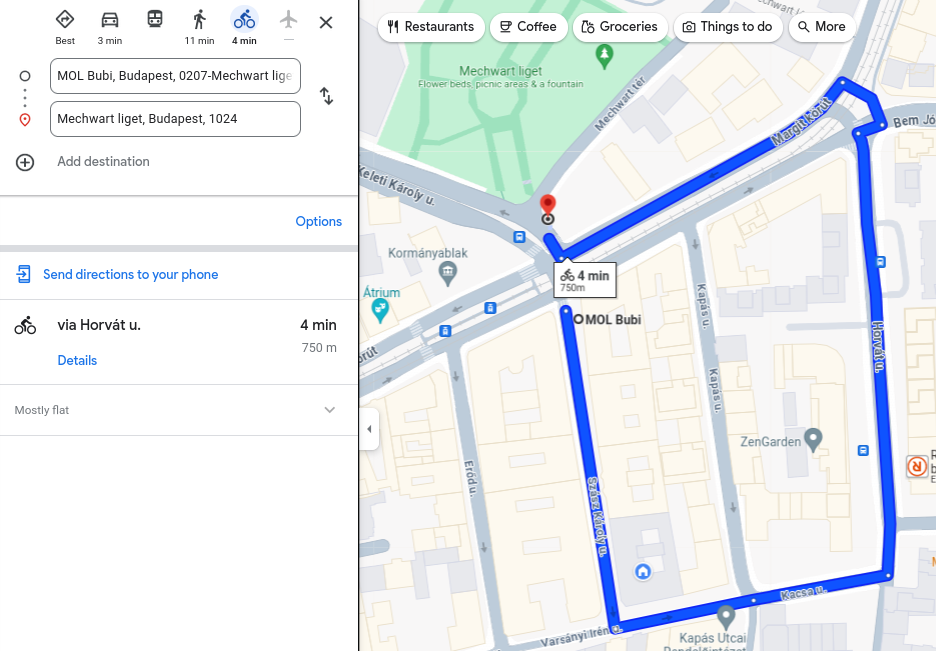 A Szász Károly utcában kerékpáros nyomvonal vezet északra, az utca északi végében bubiállomás is van. Ugyanakkor a Mecwart liget, Keleti Károly utca felé, illetve a Margit körúttra a Széna tér felé szabályosan csak a kerékpár zebrán való áttolásával, illetve jelentős kerülővel lehet eljutni. Az északnak haladás egyedüli kerékpáros alternatívája, hogy a Szász K. u. déli végében a Varsányi Irén utcára kanyarodva, a Kacsa utcán majd a Horvát utcán és a Margit körúton keresztül, kb. 750 méteres kerülőt megtéve jut el az utca kb. 20 méterre levő túloldalára.