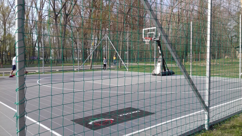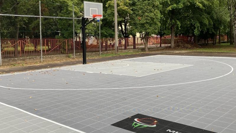 A kosárlabda pályának vizelvezetős talaja legyen és felfestés, plexis palánk és vegye körül rács vagy hálló