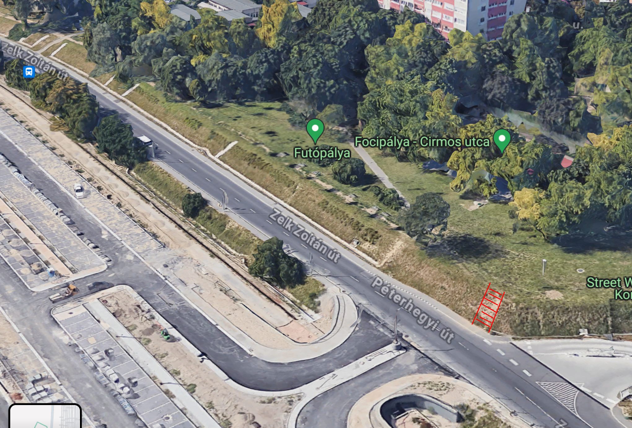 Egy lépcsőt szeretnék az Őrmezői pályaudvar-parkoló és a Zelk Zoltán utca sarkára az utca szintjéről a töltés tetejére, az ösvényhez.