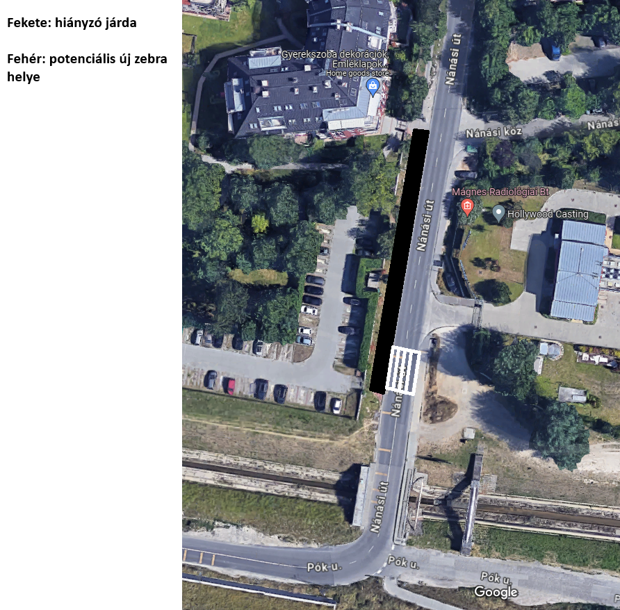 Mivel ez az egyetlen út a hídról a lakótelepek irányába, nagyon indokolt lenne egy zebra és a páros oldalon levő járda meghosszabbitása 50-100 méterrel.