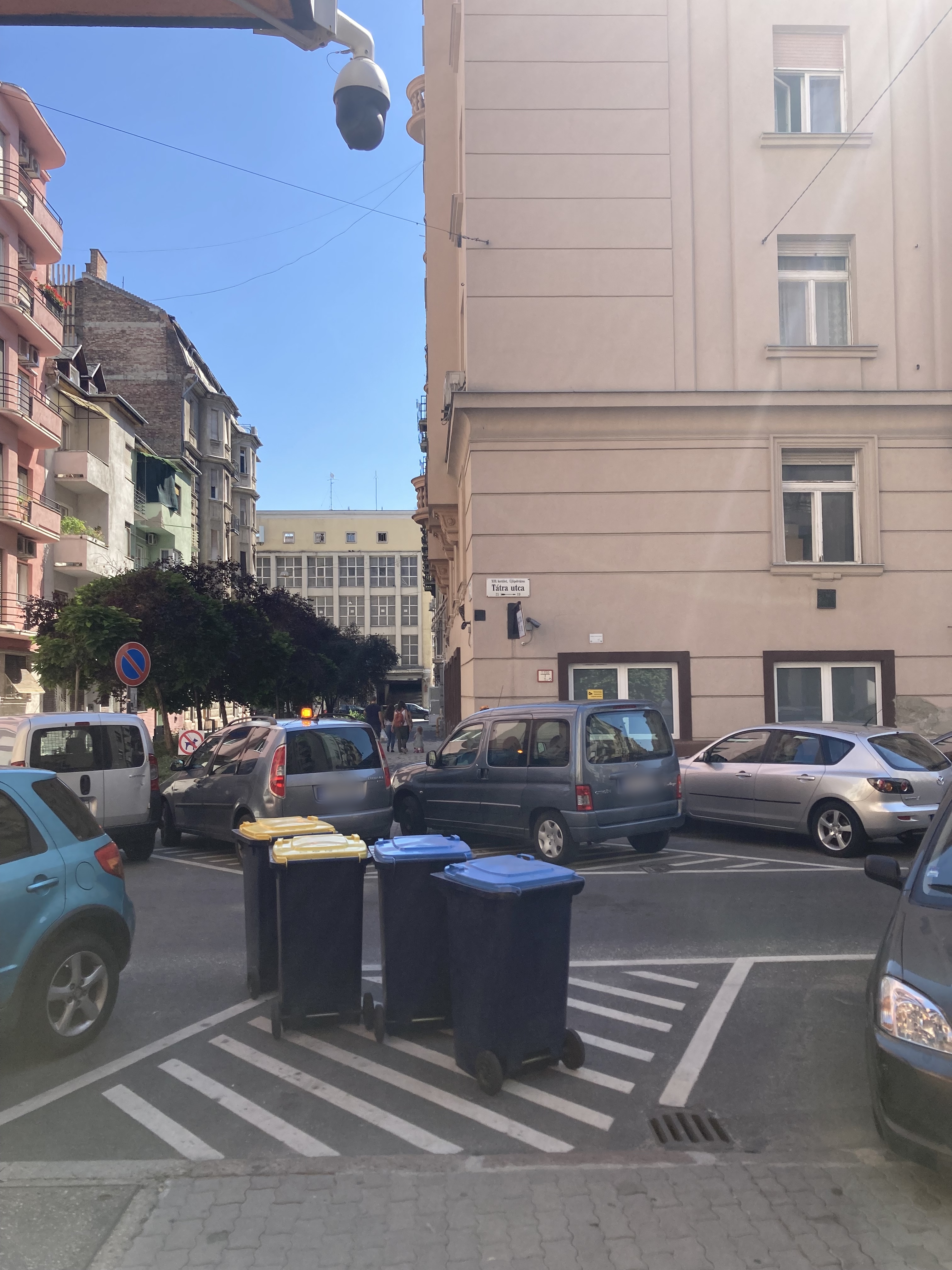 Belvárosi társasházak kapubejárata elôtt fenntartott hely a kukáknak (szemételszállítás napjai) és ideiglenesen megálló futár autóknak (pl. 30 perc idôkorlátozás és csak teherautónak vizsgáztatott gépjármû számára). Igényelt parkolóhely: 1 db/társasház.