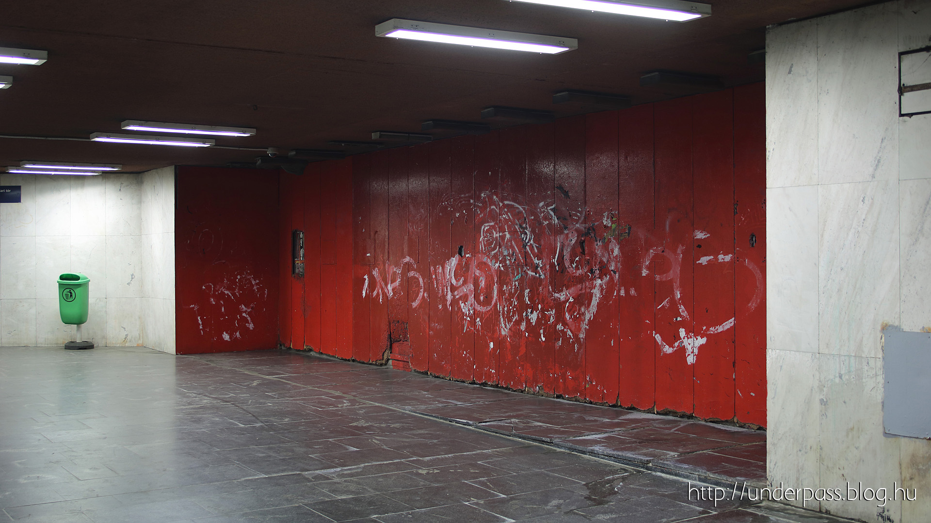 Az aluljáró végén található beugró (a telefonkészülékek voltak ott) - átlátszó (plexi?) lemezekkel leválasztva, zárható kis kiállító térré kialakítva kisebb méretű alkotások számára...