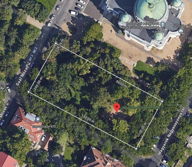 Más közparkokhoz hasonlóan a Magyarok Nagyasszonya téri játszótér és park köré egy nagyobb területet körbefogó kerítés elhelyezése. A területnek jó adottságai vannak, mert eleve egy ősfákkal benőtt, árnyékos pihenőparkot lehet kialakítani a területen. Ez a terület a Bláthy Ottó utcai járda, a Magyarok Nagyasszonya tér déli széle, a Gaál Mózes utca, valamint a Bláthy Ottó utcát és Gaál Mózes utcát összekötő sétány közötti terület. A terület kivilágítása lámpákkal. A lezárt park részre padok, asztalok elhelyezése. Játszótér megnyitása a zöld terület felé. Ping-pong asztal elhelyezése. Áram vételi hely kialakítása rendezvények támogatására. Víz vételi lehetőség bevezetése a játszótérre. Opcionális: kondipark elhelyezése, egy köztéri mosdó elhelyezése.
