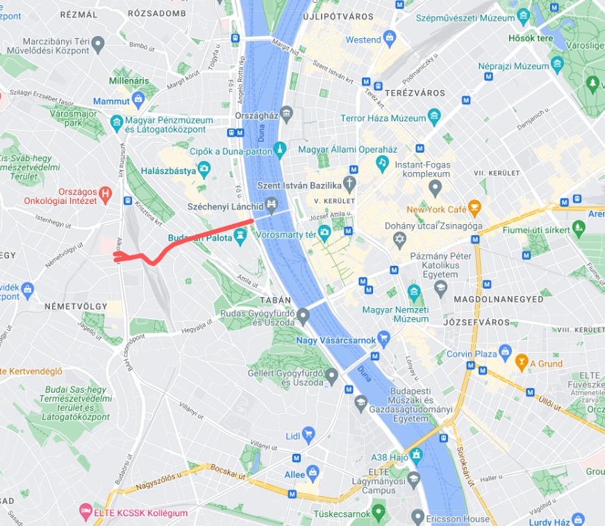 A Lánchíd és Alkotás utca között az Alagút - Mészáros utca - Győző utca - Márvány utca tengelyben