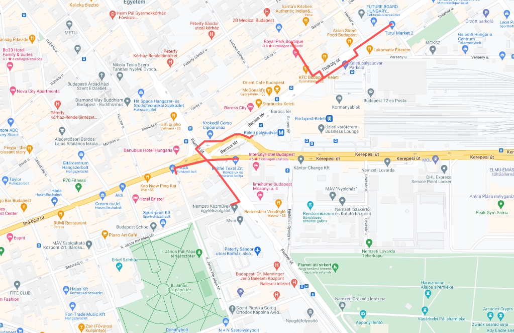 Baross tér, Rákóczi út, Fiumei út, Kerepesi út, Thököly út, Nefelejcs utca
