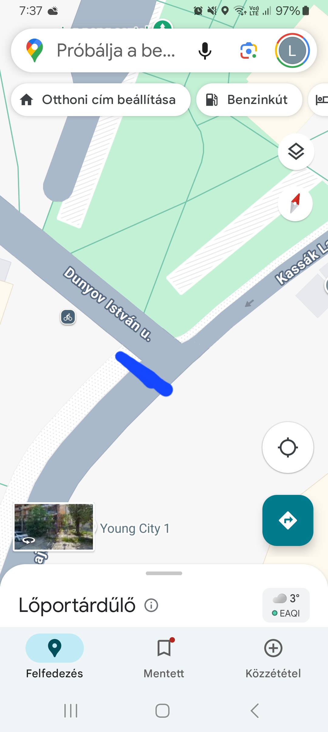 Zebra kialakítása a Kassák Lajos utca és Dunyov István utca kereszteződésében a Spár felőli oldalon.