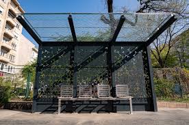 A Városligetben látott rózsakert adta az ötletet, ahol a növényzetet lugasra futtatták (non-plus-ultrája a dolognak, hogy az állványzat önmagában is elég megkapó látvány, hát még a zölddel). A busz-/villamosmegállókat átalakíthatnák olyan módon, hogy az oldalukon lévő üvegek helyét a célnak megfelelő rácsozatra cserélve, illetve a plexi (pontosan nem tudom, hogy milyen anyagból vannak, nekem annak tűnik) tetőre kapaszkodók elhelyezésével, alkalmassá váljanak a kacsok megkapaszkodására. Láttam már egy-két helyen ilyesmit, de ott a falak konkrét falak voltak, amikre növénymintát lyuggattak, azokon futhatott fel a borostyán. Én csak sima, szellős rácsra gondoltam az oldalakra. Kvázi egy lugast képzeltem el, aminek van egy (növények megkapaszkodását biztosító) teteje. A köré ültetett kúszó fajok árnyékot adnának, mint a fák, viszont jóval kevesebb helyet foglalna a gyökerük, ami leegyszerűsíti a logisztikát, ami a földben futó közművek kikerülését célozza.