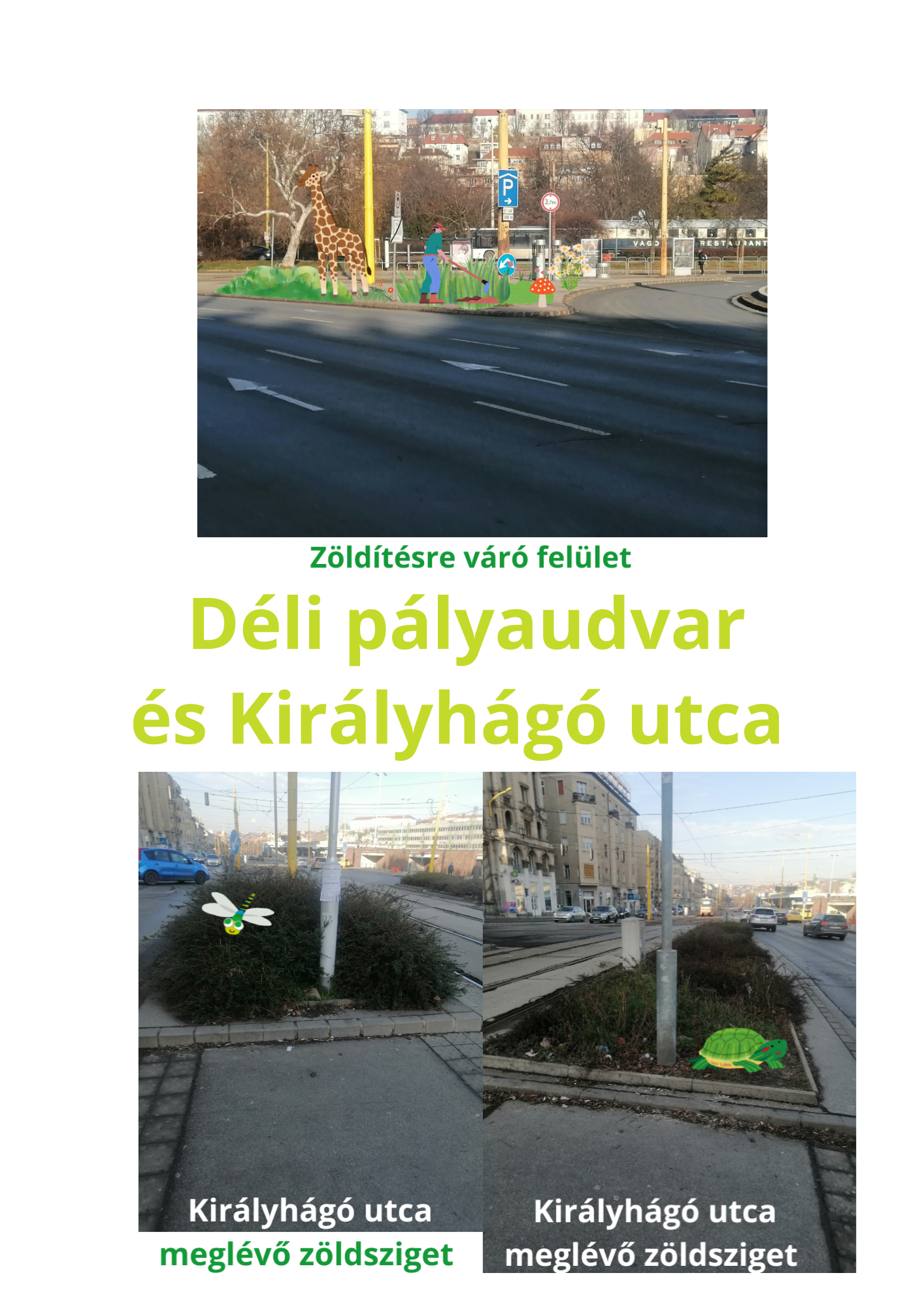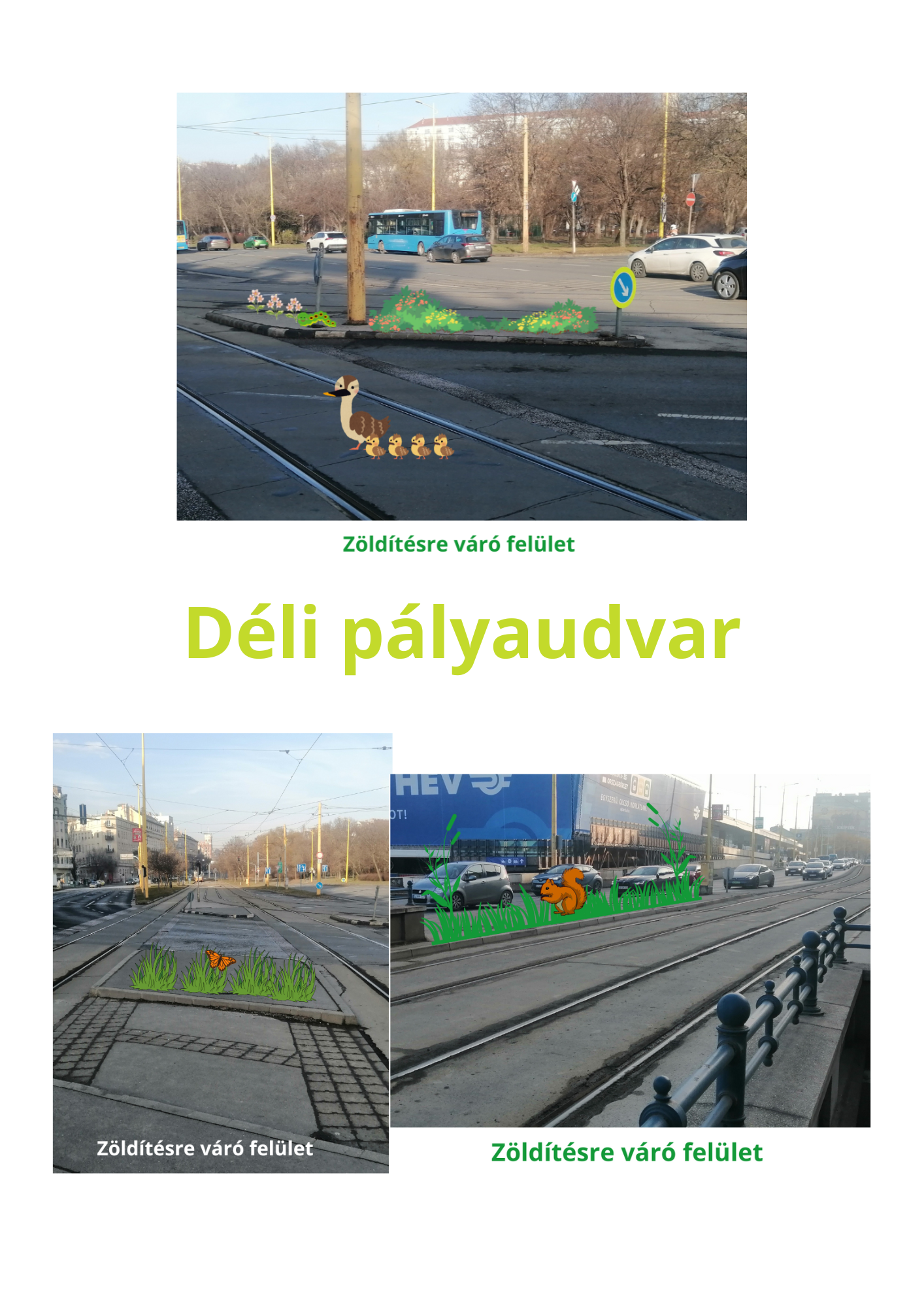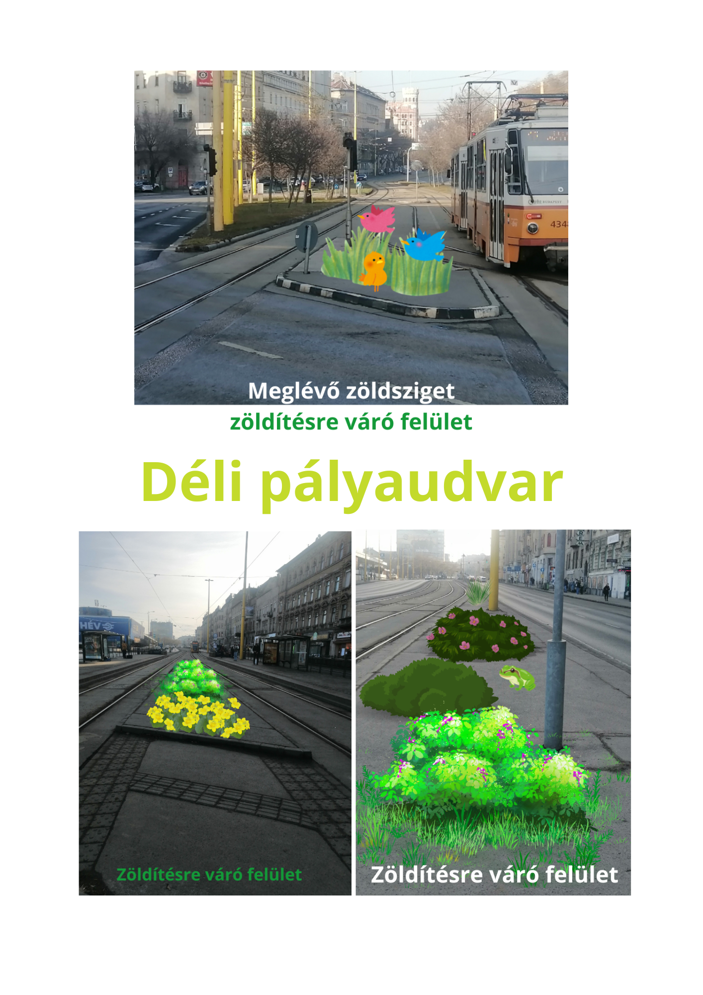Az Alkotás utca Déli pályaudvar környékét a beton uralja, rendkívül intenzív járműforgalom mellett alig található zöldfelület, ami ezt ellensúlyozhatná. Az Alkotás út több szakaszán már megvalósult a betonszigetek zöldítése, de még mindig vannak nagyobb felületek, amelyek alkalmasak lehetnek további zöldítésre. A betonfelületek zöldítésekor figyelembe kell venni, hogy felszín alatti közművek futhatnak, ezért nemcsak betonfeltöréssel lehet megvalósítani a zöldfejlesztést, hanem vékony talajtakarót igénylő zöldnövények ültetésével is. Egy olcsó, egyszerű, lehetőleg ökológiailag önfenntartó védőréteg kialakítása az Alkotás út betonsivatagában nem csak a levegőt tisztítja, hanem esztétikailag is megtörné a környék szürkeségét. Segít enyhíteni a városi hősziget-hatást a nyári hónapokban és javítja az ott élők életminőségét is. A fejlesztés nemcsak a környék lakóinak mindennapjait tenné élhetőbbé, hanem a Déli-pályaudvaron leszálló turisták első benyomása is kedvezőbb lenne a Fővárosról.