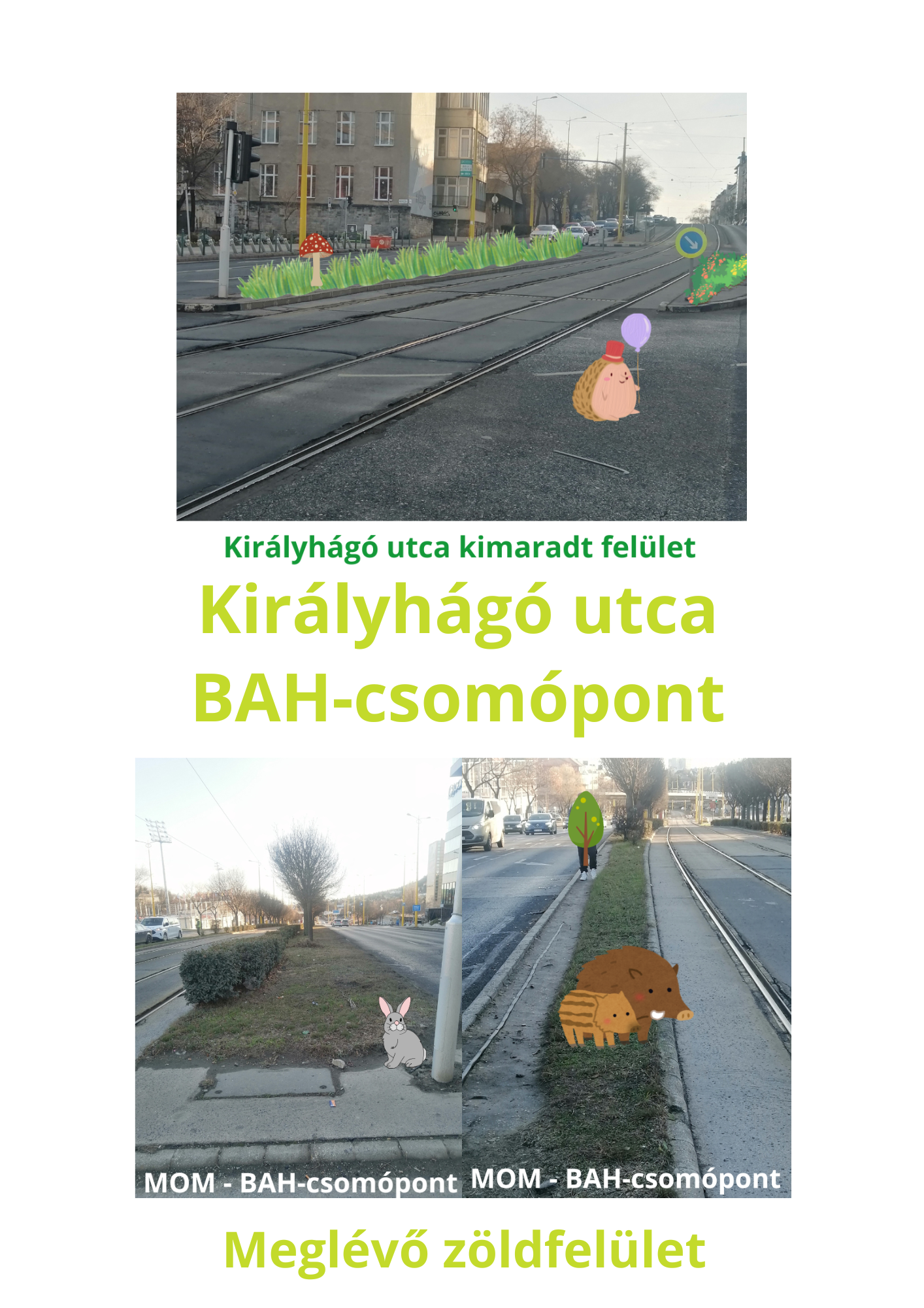 A városi szövet zöldítése nem csupán esztétikailag, hanem életminőségi szempontból is fontos. A betonfelületek nagymértékben hozzájárulnak a hősziget-hatás kialakulásához, miközben a természet alig van jelen ezen az útszakaszon. A már kialakított zöldszigetek pozitív példái is bizonyítják, hogy hasonló beavatkozásokkal élhetőbbé tehető a városi környezet. A sziklakerti növények szárazságtűrőségükkel ideális választást jelentenének erre a területre, de az egyes fűszernövények telepítése is hozzájárul ahhoz, hogy természetközelibbé váljon a környék. Ezzel párhuzamosan a lég- és zajszennyezettség csökkenhetne. A pályázat tervezésekor főkertész, illetve városi közlekedési szakember segítségét is igénybe vesszük: növények magasságának megválasztása, hogy a közlekedők beláthatóságát ne zavarja, illetve forgalomtechnikai eszközök javítását ne akadályozza. A javaslatot képekkel illusztrálva mutatom be, bemutatva a már meglévő zöldfelületeket és a tervezett fejlesztési területeket.