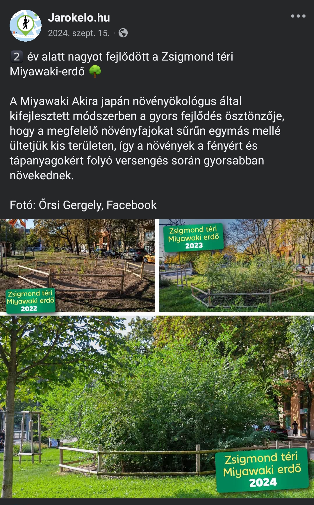A viharban kidőlt fának köszönhetően a mellette lévő játszótéren a gyerekek árnyékban játszhattak, a Miyawaki minierdő révén ez viszonylag rövid időn belül újra így lehet s ezt a szülők is örömmel fogadják majd, mivel már jelezték a problémát a nyári forróság idején.