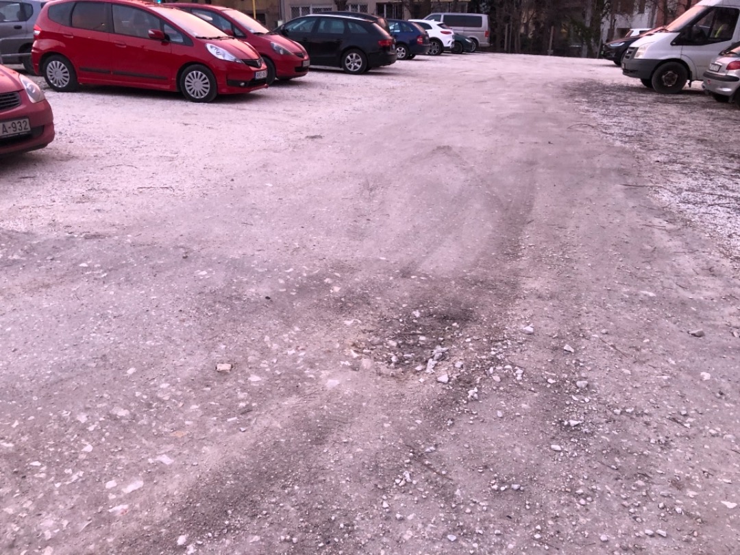 sportpályához tartozó parkolót is kibővítették. Sajnos ezen szabadtéri parkoló burkolására már nem szántak elegendő pénzt, így nagy felületen zúzottköves- aprószemcsés burkolat keletkezett. Ez abszolút nem alkalmas az igen intenzív gépjárműforgalom kiszolgálására. A parkoló szemmel láthatóan porzik, folyamatos szállóport generálva a faroló kerekek alatt. Ez a környező lakások lakóinak egészségét veszélyezteti. A jelenség miatt az illetékes Zöldhatóság (Kormányhivatal) már büntetést is szabott ki, mégsem történt semmi.