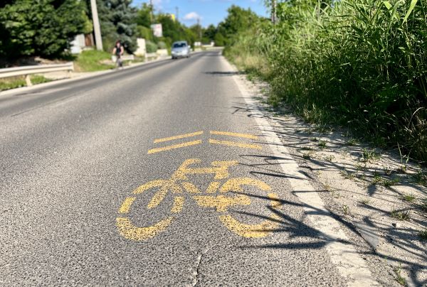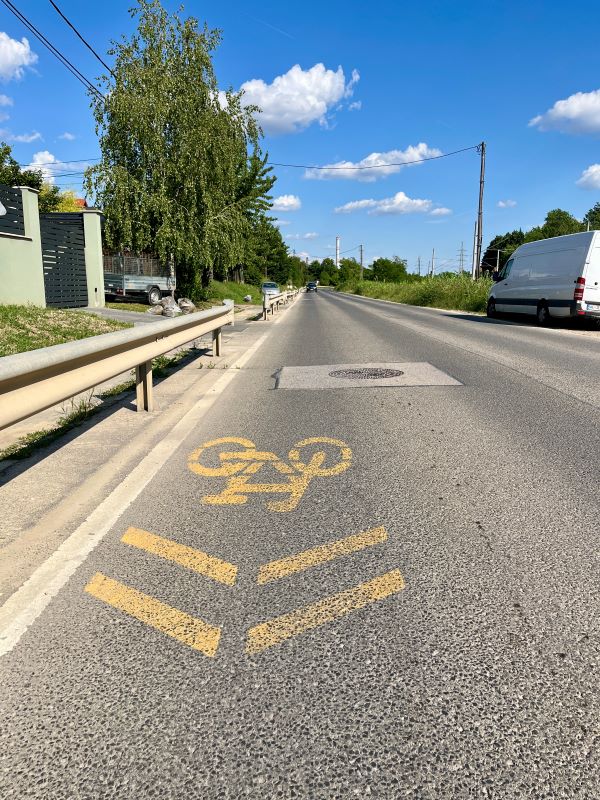 Az ürömi körforgalomtól a Bécsi úton / Aranyvölgy úton kerékpáros nyom felfestése.